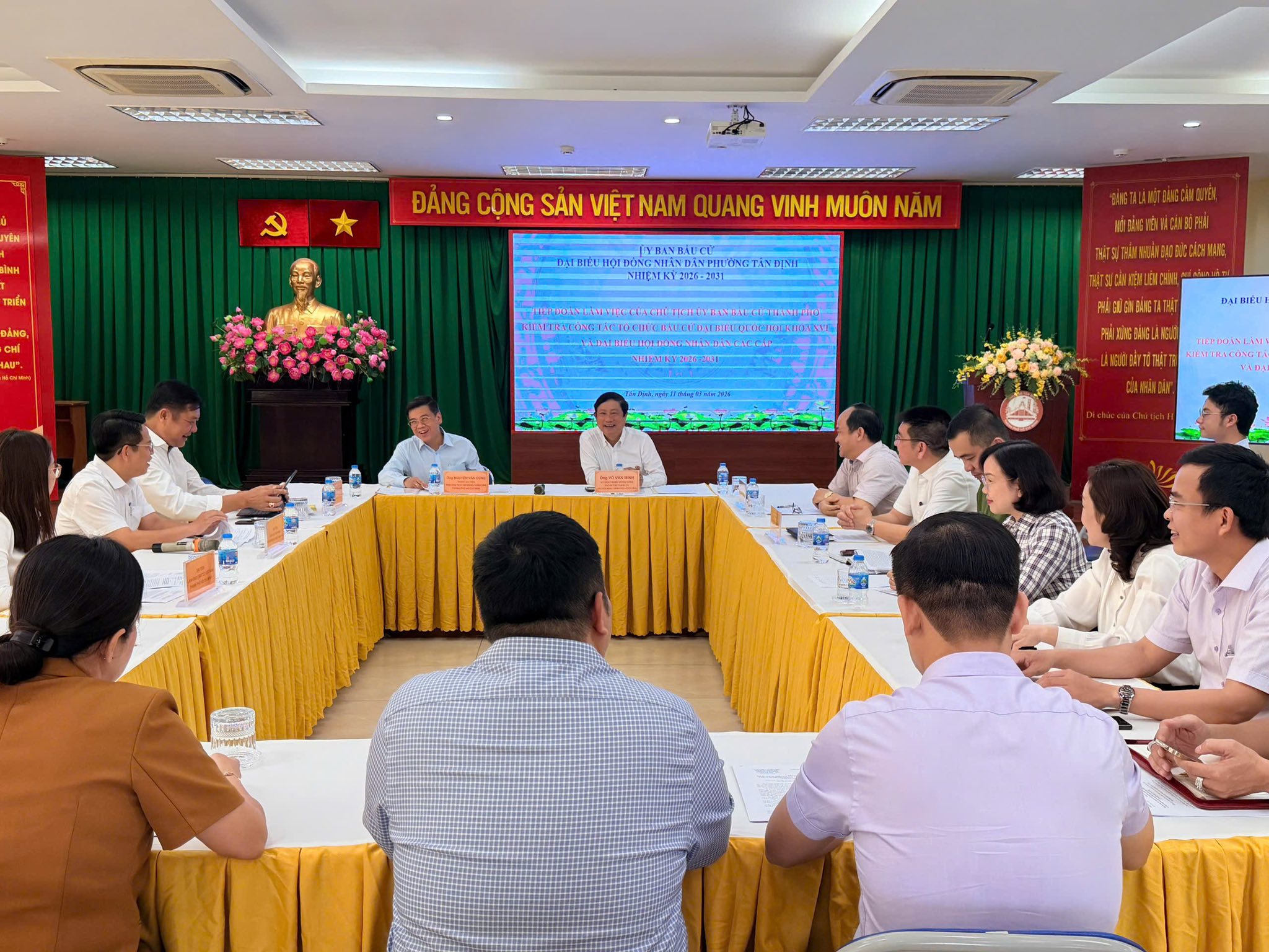 Chiều ngày 11/3/2026, Đoàn kiểm tra của Ủy ban Bầu cử Thành phố do đồng chí Võ Văn Minh – Ủy viên Trung ương Đảng, Phó Bí thư Thành ủy, Chủ tịch HĐND Thành phố, Chủ tịch Ủy ban Bầu cử Thành phố làm Trưởng đoàn đã có buổi làm việc với Ủy ban Bầu cử phường Tân Định.