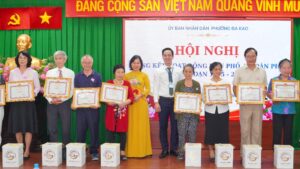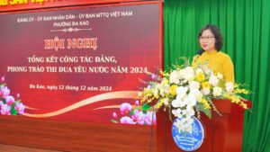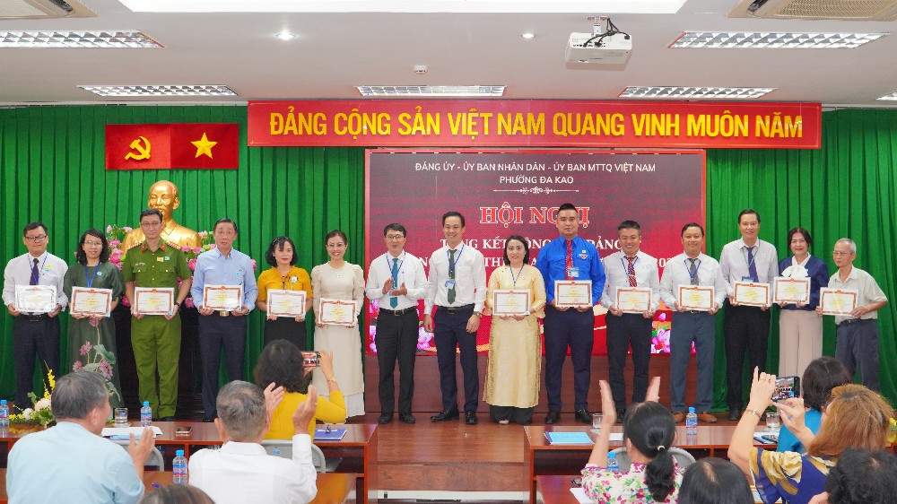 Ngày 12/12/2024, Đảng ủy – UBND – Ủy ban MTTQ Việt Nam phường Đa Kao tổ chức hội nghị tổng kết công tác Đảng bộ, phong trào thi đua yêu nước năm 2024; tổng kết hoạt động khu phố, tổ dân phố giai đoạn 1975 – 2025. Tham dự có các đồng chí: Dương Thị Hồng Gấm, Ủy viên Ban Thường vụ Quận ủy, Chủ tịch Ủy ban MTTQ Việt Nam Quận 1; Ngô Hải Yến – Trưởng Phòng Nội vụ quận; Bùi Minh Tiến, Bí thư Đảng ủy phường; Đỗ Hữu Cường, Chủ tịch UBND phường; Nguyễn Thị Xuân, Chủ tịch Ủy ban MTTQ Việt Nam phường.